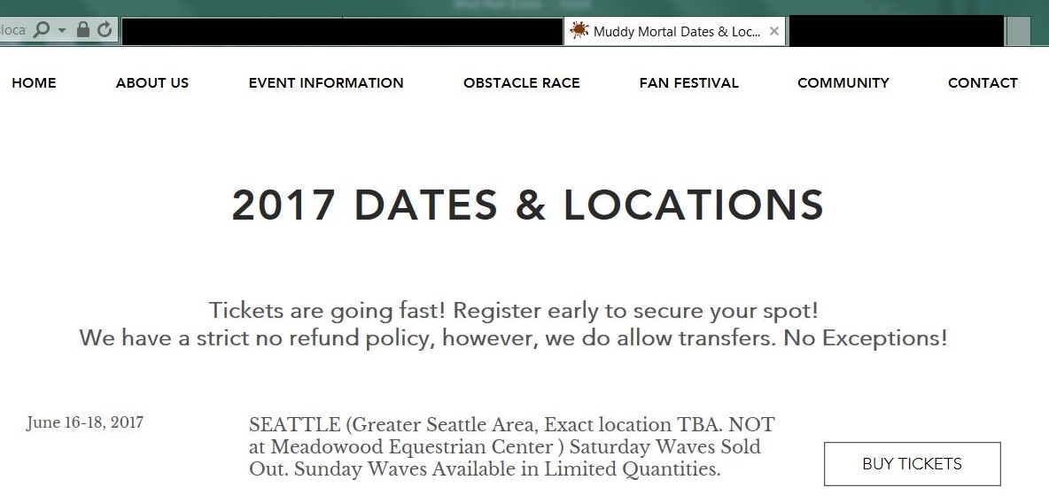 After this, ticket holders started calling their venues and finding out that they were not secured. Muddy Mortal quickly changed all Facebook Event pages to show NO venues listed, only city and state.